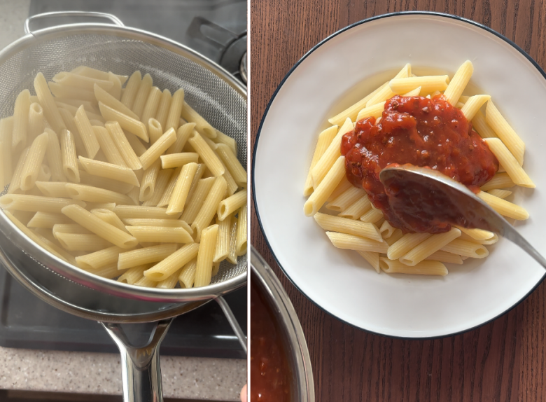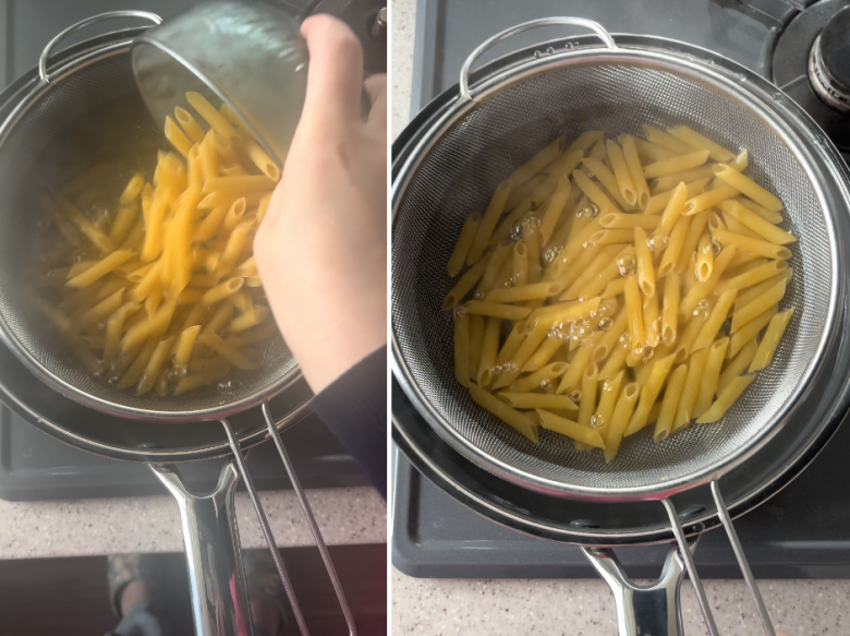 フライパン茹でに便利!賢い“ざる”が調理動線をスムーズに!