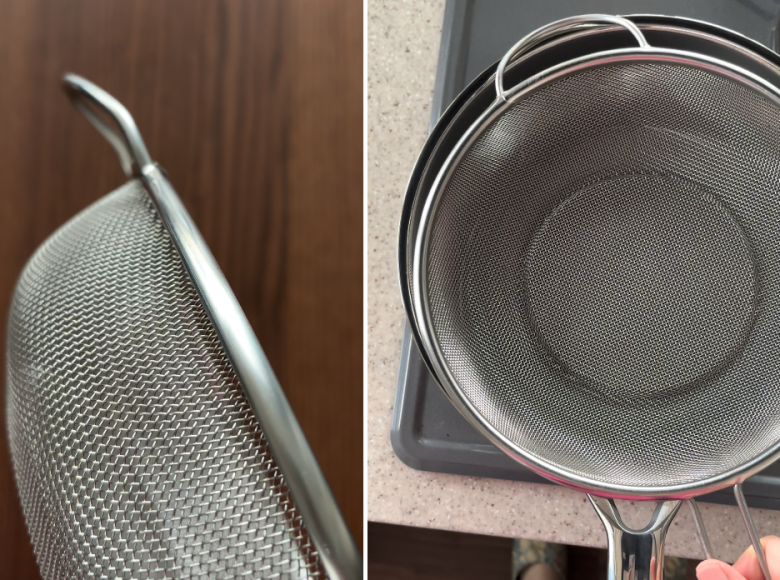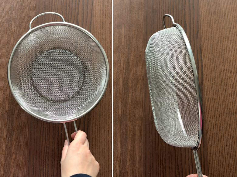 ざるは、メッシュの細かさで選ぶのが大正解。細かいメッシュを選べば、あの穴から逃げていく素麺をあーしてこーしてが、秒で解決します。フライパンとバッテリーを組んだ茹でざるのキャッチ力に、使う度にニヤリとしちゃいましょう!