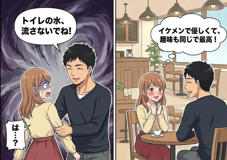 - 「マチアプでやっと見つけた運命の相手!」相性◎なハイスペイケメンといい雰囲気のままお家デートを楽しむが⇒「トイレの水、流さないで!」ドン引きの一言で思考停止に・・・