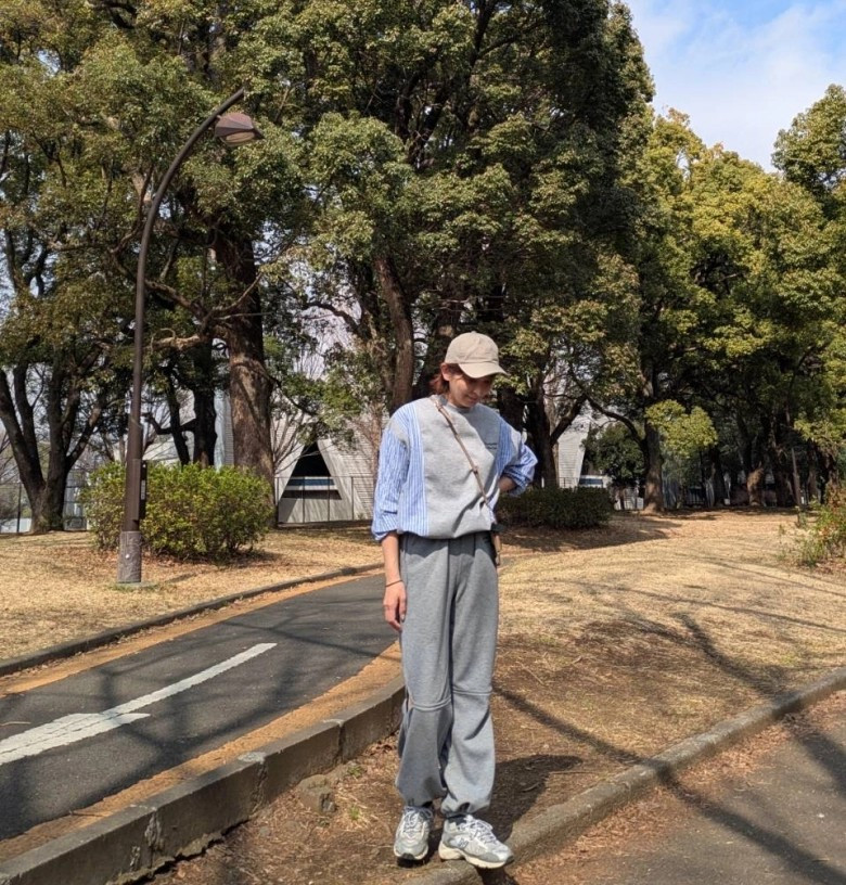 ウオーキングで着る服は正直、自分が動きやすいと思えれば問題ないので、私は少しデザイン性のあるスウェットと、ボトムというコーデが中心です。アジャスター付きで丈感が変えれるのもポイントで、シャツ生地とのドッキングが、他にはないデザインなところが気に入っています。
