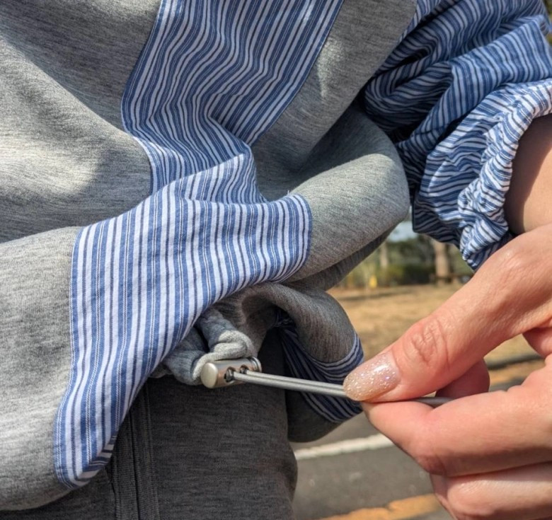 ウオーキングで着る服は正直、自分が動きやすいと思えれば問題ないので、私は少しデザイン性のあるスウェットと、ボトムというコーデが中心です。アジャスター付きで丈感が変えれるのもポイントで、シャツ生地とのドッキングが、他にはないデザインなところが気に入っています。
