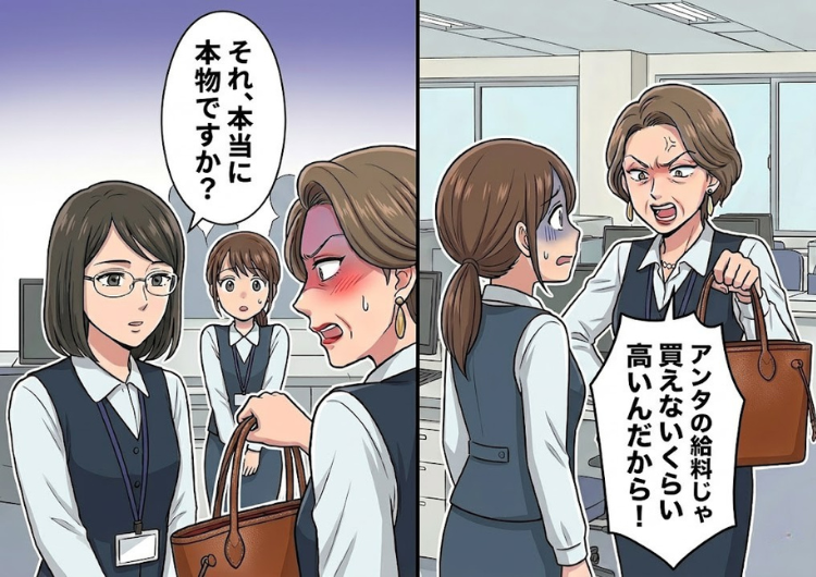 その日を境に、お局の嫌がらせは私一人に集中するようになりました。お局は「見なさい、このバッグ!パートの給料じゃ絶対買えないんだから!」と、毎日のようにブランドバッグを持ってきては、凄まじい剣幕で詰め寄ってきました。私は波風を立てまいと苦笑いでやり過ごそうとしましたが、お局は調子に乗り「あんたの仕事ぶりじゃ昇格も無理だから一生買えないわよ!」と嫌味を続けてくるのです。自慢するだけならまだしも、そこまで言われるとさすがに不満が募っていきました。しかし次の瞬間、事態は思わぬ方向に進みました。同期が、お局のバッグをじっと見つめながら「そのバッグ、本当に本物なんですか?」という衝撃的な一言を放ったのです。