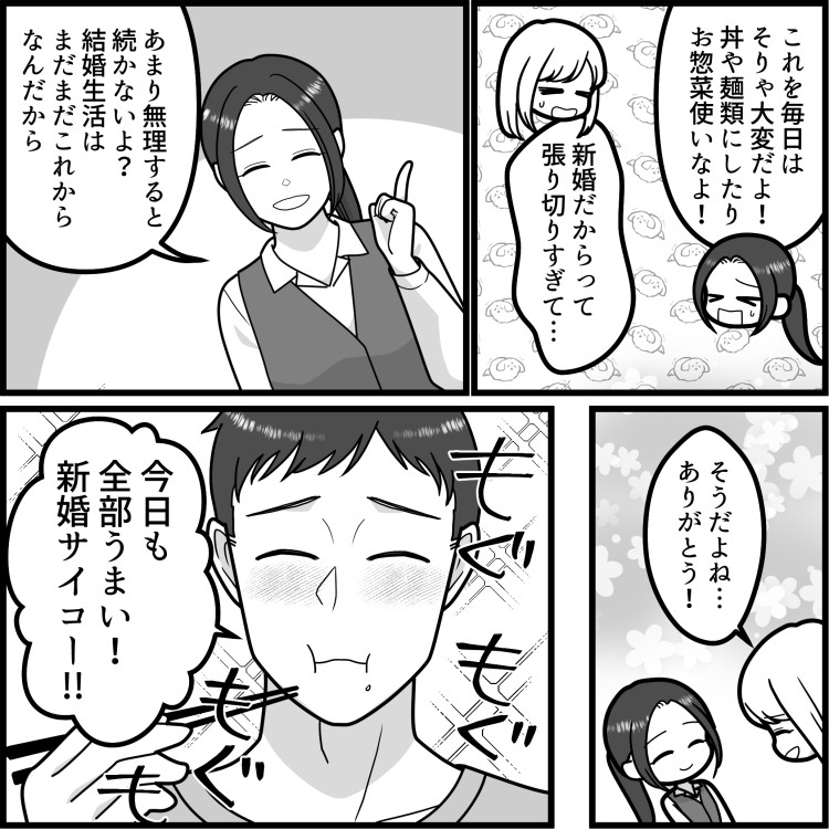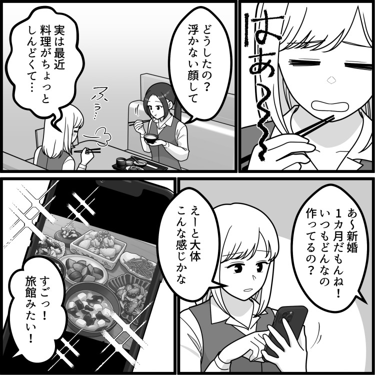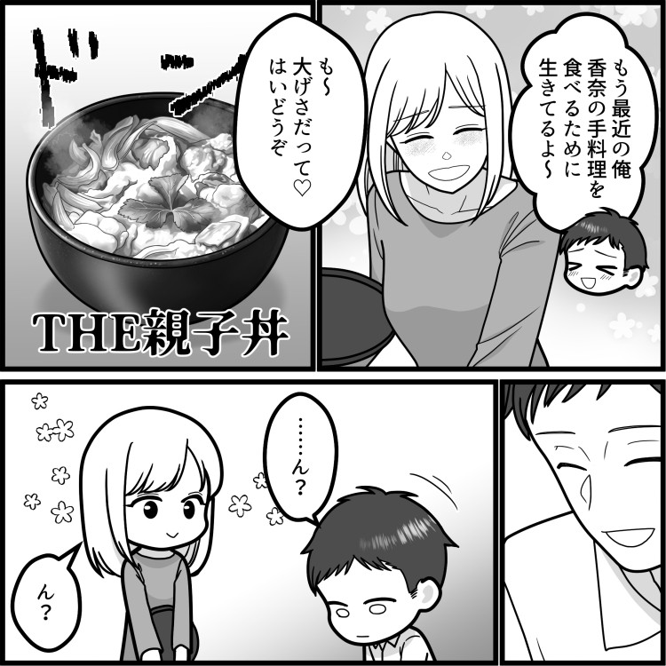 「新婚だから料理頑張らなくちゃ!」毎日旅館のような品数を出して張り切る新妻。ある日時間がなかったので“親子丼”を出すと⇒「はぁ!?こんなの手抜きだろ!」夫に全否定されてしまい・・・