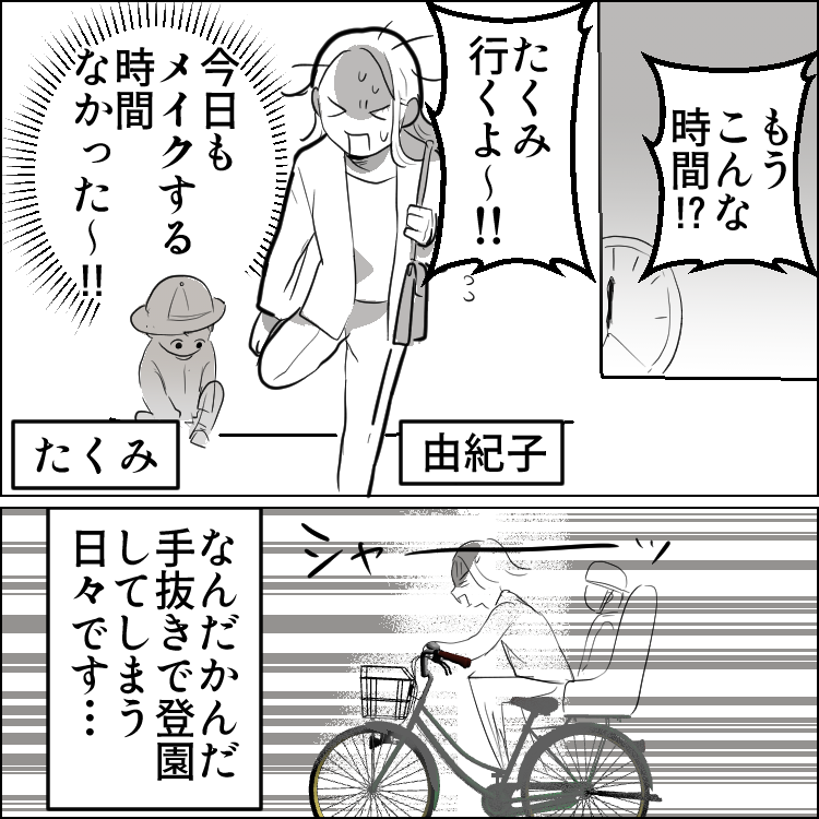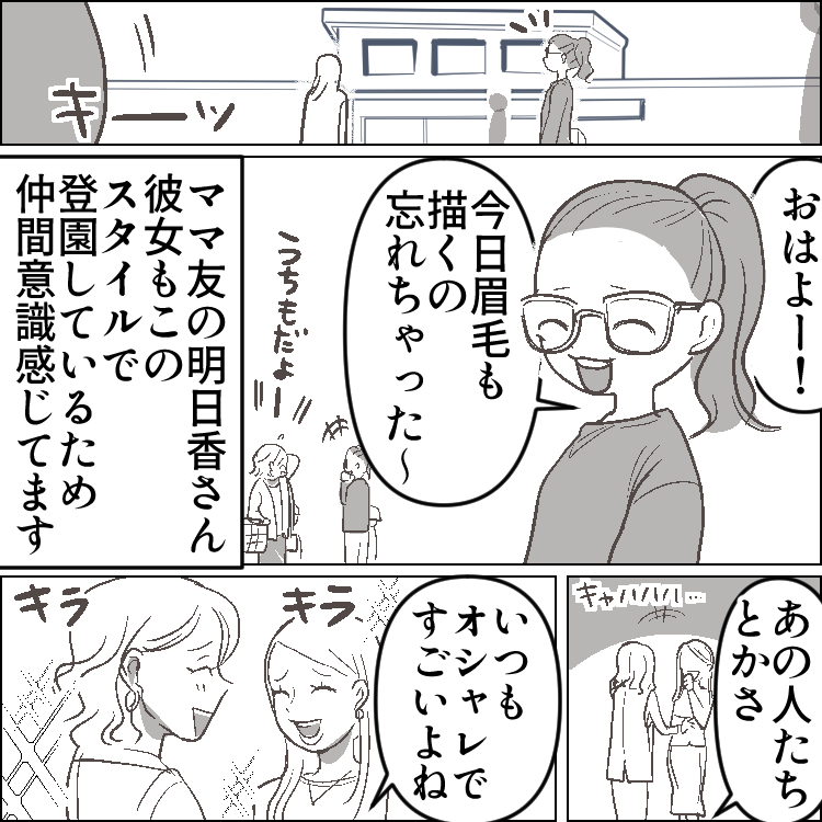 「今日も眉毛描くの忘れちゃったぁ~」育児にドタバタで毎日すっぴん登園のママ友。しかし、彼女の旦那さんは実は不倫していた!?⇒“爆美女の愛人”が保育園にやってきて大修羅場かと思いきや・・・