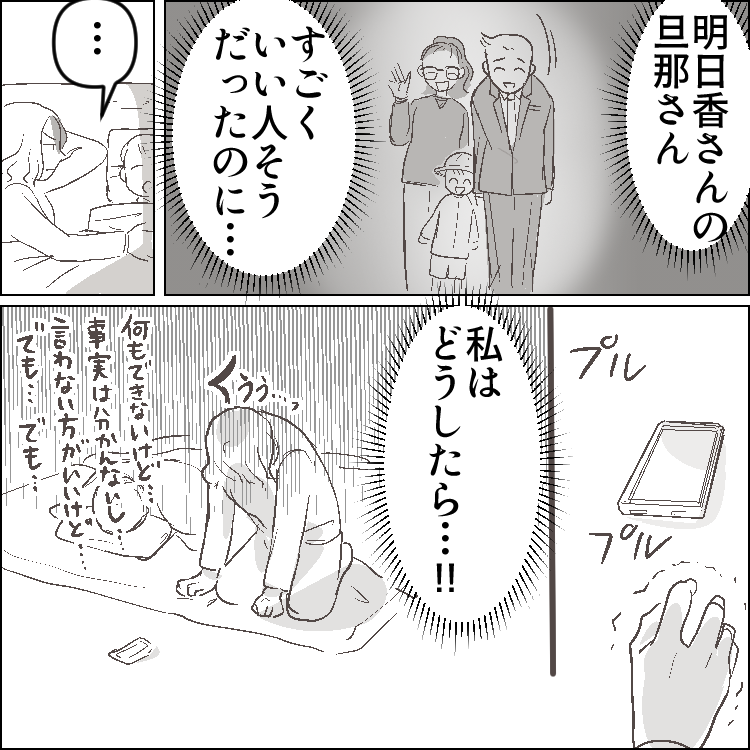 - 「奥さんが他の部屋に行った隙に…キスしちゃおっと♡」「大胆だなぁお前は」妻のすぐそばでイチャつくW不倫カップルがエスカレート⇒「まさか…」勘付いた妻がベッドルームに乗り込むが・・・