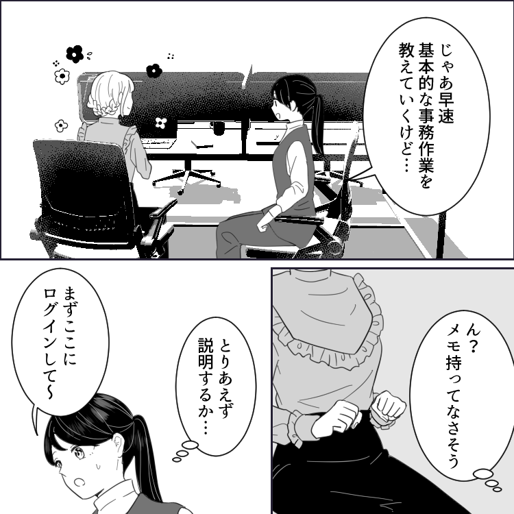 春になり、りさは新入社員・篠原さんの教育係を担当することになった。入社早々、メモはアナログではなくスマホで高速タップ、お昼ご飯は会社に出前を頼もうとするなど、若者の感覚の違いに驚くりさ。篠原さんに振り回されて疲労困憊になりながらも、なんとか気を取り直して、彼女に頼んでいた仕事をチェックする。確認が終わり、レポートを修正するように篠原さんに伝えると、なんと彼女からは予想外の返答が!?