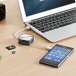 サンワダイレクト、巻き取り式デュアルUSBケーブル装備のmicroSDXCリーダー