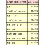 冬ボーナスの平均額は50万円、過去支給額が最も高い業界は「金融」に