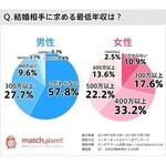 結婚相手に求める最低年収、女性6割が「500万円未満」と回答
