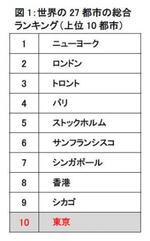 東京の総評価は27都市中10位でも、自然災害リスクは最下位 - 世界の都市力