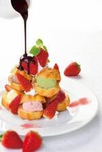 7種のプチシュータワーにあたたかチョコソースをかけた“ひやあつ”スイーツ