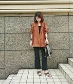 UNIQLOのワッフルT1500円。トレンドのブラウンで大人の同系色コーデ