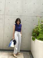 990円のGUリブタンクトップで、普段は着ない苦手色にチャレンジ