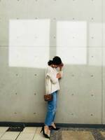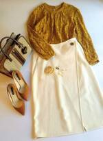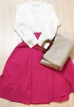 定番白ニットには「きれい色ボトムス」が今っぽい