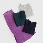 「女前」な辛口パープルはネイビーと合わせて。優しく、今っぽい印象に仕上がります