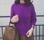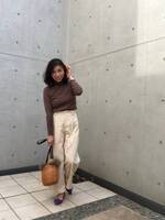 大人のパープルコーデにはブラウンを取り入れて。品良くおしゃれにまとまります