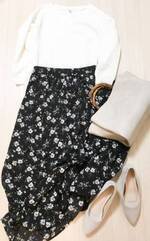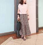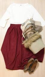 ロングスカートは華やか色がおすすめ。ベーシックトップスと合わせるだけでキマります