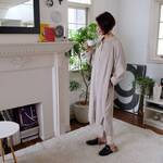 旅先、おうちでゆったり過ごせるベージュレイヤードコーデ