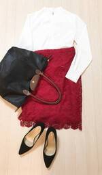 UNIQLOのレーススカートが優秀。抜け感あるノーカラーブラウスを合わせました