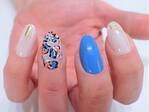 目を引くデザイン! ブルー×オレンジの爽やか春夏ネイル【マニキュアでセルフネイル】