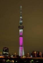 東京スカイツリーがピンクにライトアップ、ソラカラちゃんの限定グッズの販売も