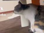 「見たことない角度」 テーブル下の猫の姿勢に「マックスレベルの猫背か」