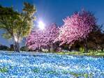 ネモフィラと八重桜のコラボに「初めて見た」「半端ない」 ライトアップに7万『いいね』