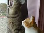 眠たそうな表情の猫 1匹が大きく口を開き…?