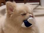 「ダイソーに買いに行きたくなった」 愛犬がお土産の『おにぎり』を楽しみすぎて?