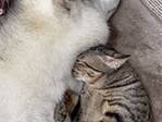 『猫吸い』ならぬ『犬吸い』? ハスキーのことが大好きな猫に「かわいすぎ!」