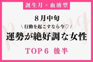 【誕生月×血液型】1位は成功に近づく時☆8月中旬、「運勢が絶好調な女性」TOP6<後半>