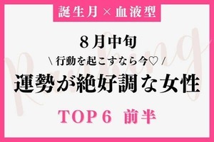 【誕生月×血液型】1位は成功に近づく時☆8月中旬、「運勢が絶好調な女性」TOP6<前半>
