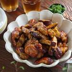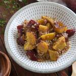 おいも掘りのサツマイモで簡単おかず。サツマイモと鶏ももの甘辛炒め