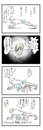 筋トレ中のママにまめとゆめこから「試練」『まめ日和』第194回