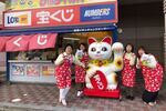 ドデカ看板、巨大招き猫…“神様”の目を引く「宝くじ」売り場