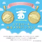 サンリオ“シナモロールデビュー20周年記念”世界で限定500枚の「純金メダルペンダント」11月11日発売