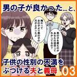 「女は育児と家事をするなんて当たり前。」低賃金のくせに偉そうな夫。夫のマザコンにも気づき始め…<子どもの性別の不満をぶつける夫と義母#3>