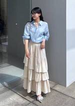 可愛い → カジュアルまで網羅♡【しまむら】裏地付きの万能「フリンジチュールナロースカート」