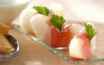 みずみずしい甘さと塩気の相性が抜群! 梨と生ハムの前菜