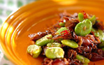旬を味わうコンビネーション! ソラ豆とホタルイカのペペロンチーノ