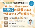 8/20開催『朝、どうして起きられないの?不登校の背景にある”体のサイン”を知ろう』/第212回ホロニクス公開医学講座