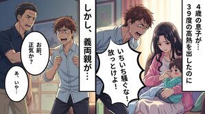 4歳の息子が【39.8℃】の高熱だが、夫「騒ぐな!放っておけ!」しかし⇒「お前…正気か?」義両親にバレ「あ、それは…」