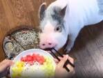 流しそうめんを楽しむマイクロブタ 驚きの結末に「声を出して笑った」