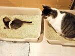 「こうやって食べるのか」「トイレはこうか」 先輩猫を見て、学ぶ子猫がかわいすぎた