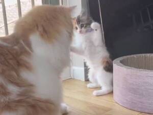 子猫が先輩猫に「やーっ!」 直後の展開に「容赦ない」の声