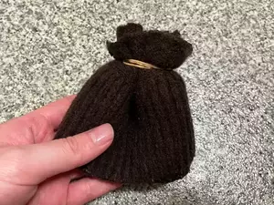 断捨離したニットを『脚カバー』に 2本の輪ゴムで縛るだけの簡単リメイク