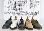 ドクターマーチン×エンジニアド ガーメンツのコラボシューズ、英国製4ホールを左右非対称のデザインに
