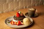 スイーツでキレイに?デトックス効果の炭入りパンケーキとカフェラテ