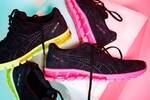 アシックス×アトモスのスニーカー、ブラックスウェード&ネオンカラーで都会風に