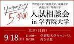 学習院・成蹊・成城・武蔵・甲南の5大学が、9月18日(日)、学習院大学で合同入試相談会を実施